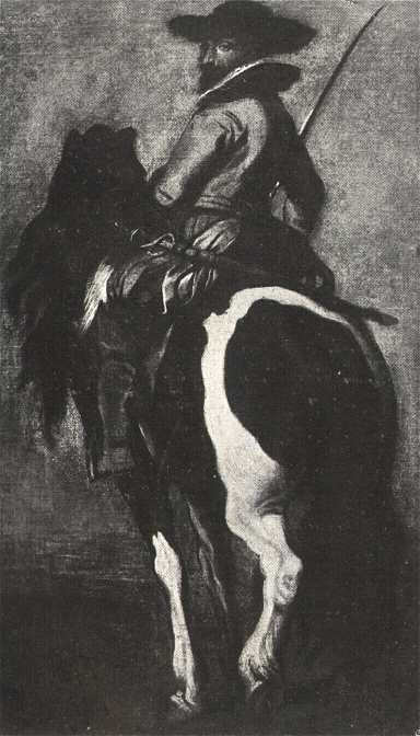 "Rembrandt saját arcképe fiatal korában" a címe a gróf Andrássy Gyula-féle gyűjtemény egyik darabjának. A kép erős javításon esett át, de oly nagyszabású és széles előadása, hogy elsőrangú művész szerzőségére kell következtetnünk s ígv a Rembrandt nevére való keresztelést nyugodtan elfogadhatjuk. Nem mernék ugyanígy vélekedni a Van Dycknek tulajdonított "Tanulmányfő "-ről (gróf Batthyány Lajosné gyűjteménye) és az ugyanezen mester neve alatt szereplő " Lovas"-ról (gróf Andrássy Géza gyűjteménye). A tanulmányfőn sok nyoma van egy modern, friss és biztos kéznek. A mi a lovast illeti, hát jól tudom, hogy nem egy hasonló ábrázolás található különféle gyűjteményekben a mester neve alatt. De majdnem valamennyiüket túlbecsülték. Van Dyck mégis csak különb módon értett az anatómiához és a színharmóniája sem ily tompa. Ugyanezt mondhatjuk az "Angyalok bukása" című Rubens-féle vázlatról.
