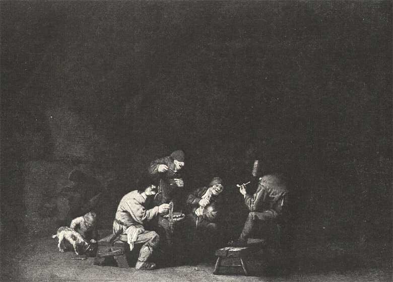 Meglehetősen jellemző Roos-féle mű van Kohner Adolf gyűjteményében "Állatok" címen, míg a Fellner Henrik-féle gyűjteményből való "Borozó parasztok", a melyek Isaac van Ostade nevén szerepelnek, bizonyára vitára adnak alkalmat. Ha Isaac-nak akarnók ezt a képet adni, úgy határozottan legkoraibb munkálkodása körébe kellene azt utalnunk. Ellene szól ennek a kezelés felette lágy módja és a finom sfumato. Úgy hogy ha valódinak fogadjuk el ezt a képet, inkább Isaac bátyjára, Adriaenre kell gondolnunk.