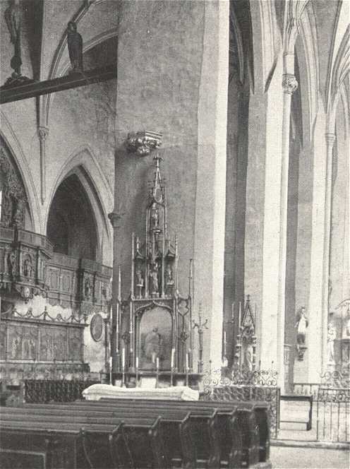 Azt hiszem bízvást hozhatom az utóbbi két okmányt a XIV. század dereka táján épült szentély átalakításával kapcsolatba s így még inkább valószínűvé válik, hogy templomunk a XV. század első felében mai alakjában készen volt s a déli oratóriumon és tornyon kívül ezután már csak templomunk belső fölszerelése foglalkoztatta a város különböző mestereit.
