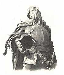 A paripa szügybe szegett feje mögött, -szinte deréktól kezdve látjuk a király hadverő alakját. Magasan domborodó páncélja alatt érezzük a testet, dobog a szive, él. A legkü-vetelőbb naturalizmus se találhat hibát rajta, pedig a lehető legstilizáltabban, hogy úgy mondjuk, szobrosan ül nyergén ; helyesebben, feszülő térdekkel áll a kengyelben. Feje, arcéle nem szelíd: fönségesen erős, imperátori. Ilyen testtartása is.