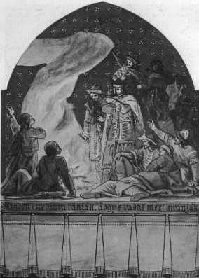 RÉSZLET SZÉKELY BERTALANNAK A VAJDA-HUNYADI CIKLUS ÖTÖDIK KÉPÉHEZ KÉSZÍTETT NAGY KARTÓNJÁBÓL