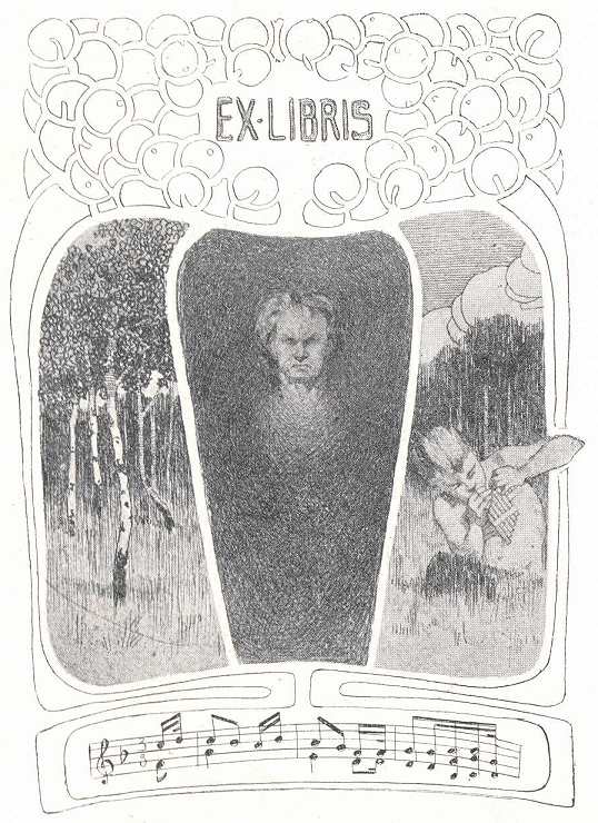 A jövő emberei is erősen dolgoznak. Azok között, a miket tőlük láttam, a legszebb Vadász Miklós rajza Beethoven fejével. Csupa hangulat az a csöpp rajz és szubtilisan finom. Kár, hogy nem rézbe metszette. Szentmiklósy Zoltán, Lakatos Artúr, Cserna Rezső, Gerstner Ödön, Burg-Pravatinsky Lajos, Sarkadi Emil egytől-egyig megemlítésre méltó rajzokkal igyekeznek népszerűvé tenni könyvjegyeiket.