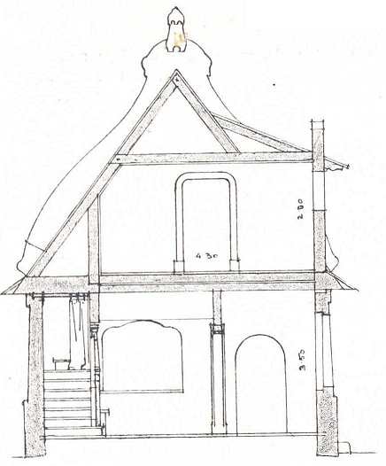 17. Piros kör két fekete körrel (rajzolt). Alaprajza kezdetleges, szintúgy a homlokzat.