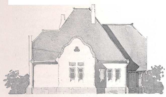 3. „Parva domus, magna quies." Az alaprajz nagyon komplikált, a kényelmes lakhatás rovására. A homlokzat közel áll a konvencionális villastílushoz és egyes részletektől eltekintve új, művészi és magyaros formákat nem mutat, de nagy szorgalommal van rajzolva.