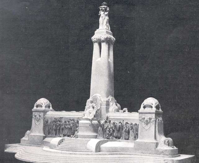 Margó, Popper, Scheer, Fischer. Pályaművüknek határozott előnye a teljes összhang a szobrászati és építészeti részek között. Szobrászati részében finom művészi érzés nyilatkozik meg. E mellett a főalakban és elhelyezésében a monumentális hatás sem hiányzik. Ezekkel az előnyökkel szemben áll az, hogy a pályaterv síremlékre emlékeztet és elhelyezése magán a téren sikerültnek nem mondható.