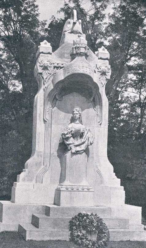 ERZSEBET-EMLÉKMŰ CZECZÉN A MELLSZOBOR ZALA GYÖRGY MŰVE AZ EMLÉKMŰ TÖBBI RÉSZE TŐRY EMIL MŰVE