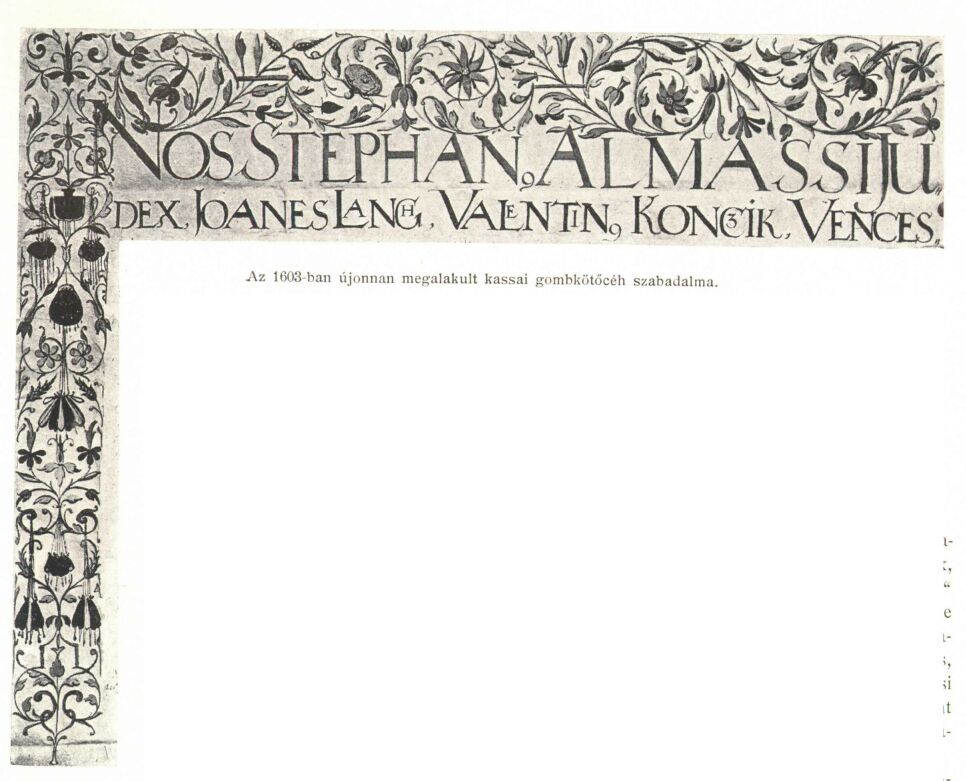 Az 1603-ban újonnan megalakult kassai gombkötőcéh szabadalma.