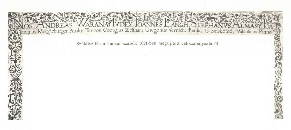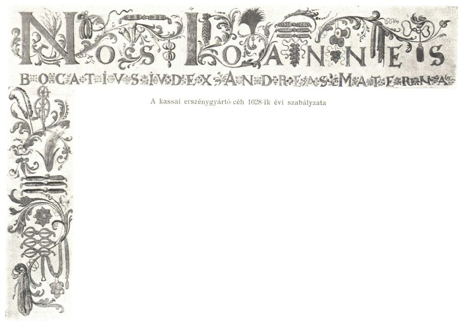 A KASSAI KANNAGYÁRTÓK CÉHSZABADALMÁNAK LAPSZÉLI DÍSZÍTÉSE 1612-BŐL