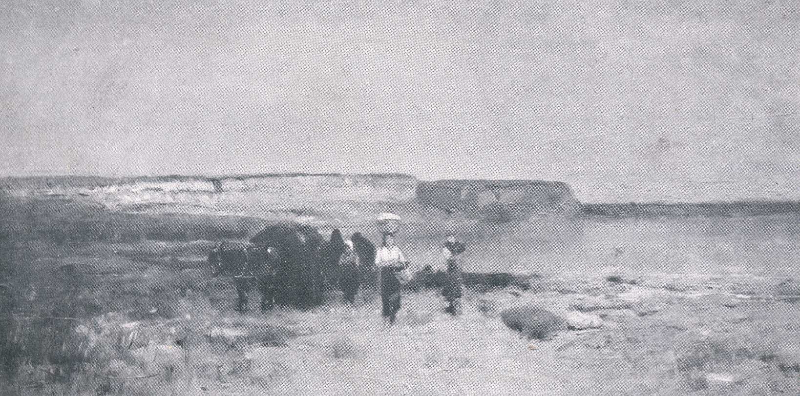 Amikor csak tehette, jött haza az Alföldre, a Tisza mellé, a magyar tenger partjára ; jegyzeteit itt készítette, lelke itthon fürdött meg új impressziókban, vázlatkönyvébe itt találta meg a tájképbe helyezett zsánerekhez a típusokat, - - így azután idegenben se lett idegen. És mintha hálás akart volna lenni hűségeért az anyaföld, éppen ezek az itthon talált kis dolgai segítették sikerre már Bécsben : ő lett az akadémia egyik kitűnősége s képeit szívesen vásárolták a bécsiek.