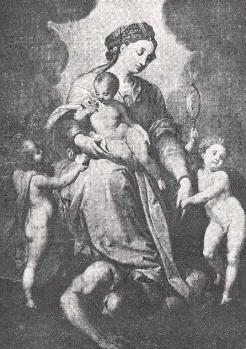 Van itt egy szép madonnakép, amely ugyanabból a gyűjteményből származik, amelyből Pulszky Károly az Országos Képtár Piombo-képét szerezte. Két angyalka van a madonna mellett, az egyik tükröt tart. A mű Cornelisz van Haarlem neve alatt szerepel, de bármennyire olaszos volt is ez a mester, s bármennyire correggiószerű ez a madonna: mégsem vehetjük biztosra, hogy ez a kép tőle való.