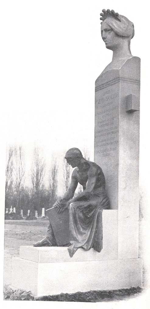 Így lesz a temető nagy megnyilatkozásává a leghatalmasabb emberi páthosznak. A síremlék egy művésznek a halálról való érzését foglalja látható formába. De ez az érzés szertelen nagyságában világosan meg nem fogható, pontosan meg nem határozható : sejdítés, köd. Ki tudná szigorú formákba rögzíteni azt, a mi biztos határ nélkül való ? A nagyerejű is csak közeledhetik feléje, csak elmosódott daguerrotipet adhat róla. De kő és bronz biztos és határolt fonnák : miként alakítsa a művész, hogy kifejezze velők ezeket a kialakulatlan érzéseket ?