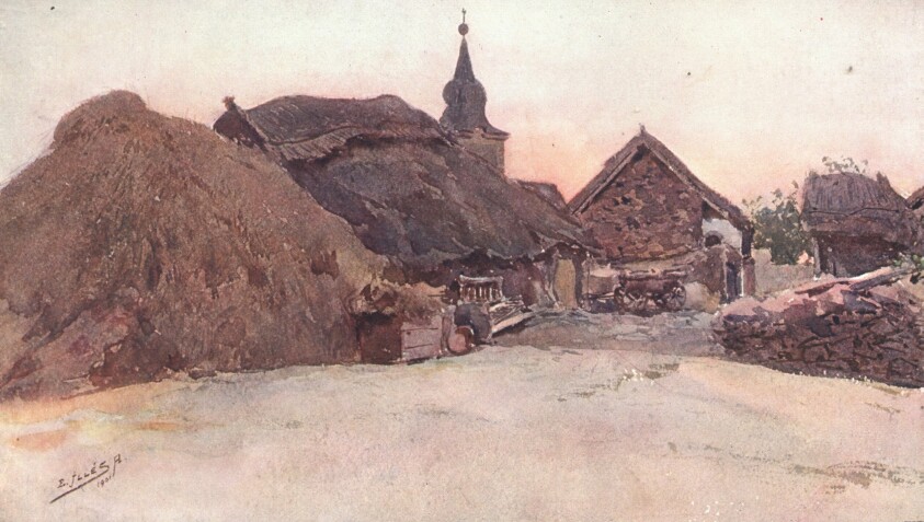 FRECSKAY ENDRE "Tájkép"-ét közöljük a 131-ik oldalon. Eredetije tollrajz.