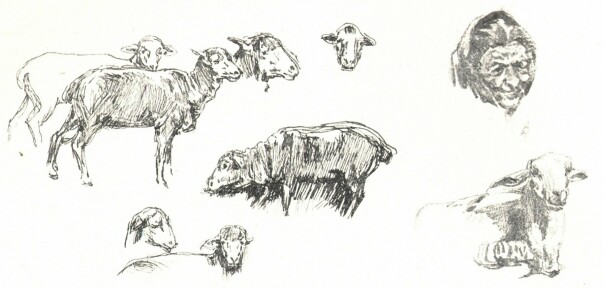 E tanulmánya alapján kialakul a tudása. Mindent úgy lát, hogy emlékszik mindenre, amit látott. És ezért azt is megtestesítve látja, ami sohasem került a szeme elé. Megkonstruálja a tudott részletekből és megtestesíti az emlékezése és képzelete kegyelméből. Emlékezése és képzelete pedig azt az ő sajátos fölfogását szolgálja. A képei tehát komplikált intellektuális munka eredményei. Lát és földolgoz, azután emlékszik és átdolgoz. Lát ezer elemet, földogozza őket pozitív tudássá, azután megkonstruálja a képet az emlékeiből, vagy az emlékeiben gyökerező fantáziájával; megeleveníti, megtestesíti, nagystílűvé formálja a maga sajátos fölfogásával s aztán ezt a testté vált természetet, ezt az alakot, pozitív formát öltött képet — lefesti. Szakasztott úgy, mint a csakis lefestők. Látja a színek, a felületek, a foltok, az árnyékok játékát, látja a vibráló fénynek formát és színt alakító hatását. Látja a mélységeket és a színértékkülönb-ségeket, a távlat kialakulását és a levegőnek térformálását.