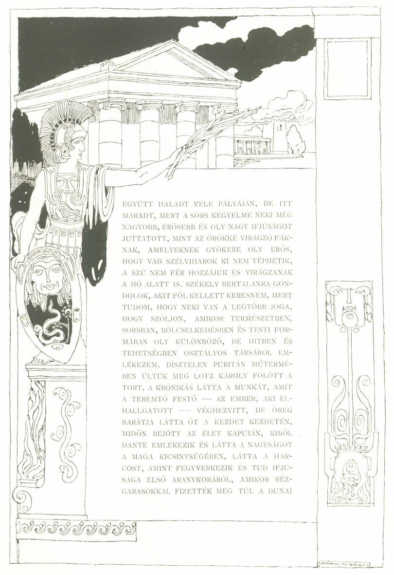 És íme, mindig többen és többen látják benne a követendő példaképet és a benne rejlett páratlan jóság még mintha sírjából is kisugározna felénk, mindig többen vagyunk, akik az ő iránti tiszteletben és szeretetben egymással találkozunk és a fájdalmas rezignáció-ban valami jóleső melegséggel kérdezzük egymástól, hát te is itt vagy, te is szeretted őt? És ha ellentét van is közöttünk felfogásban és gondolkodásban, ha őt együtt szeretjük, egymásnak sem lehetünk idegenek. Az ő emléke összeköt bennünket a művészi fejlődés a kulturális törekvés kezelésében.