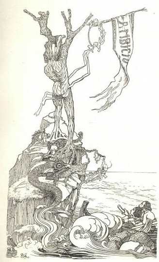 És itt újból érdekes annak a kutatása, mennyire dacol az "anyag akarata" még a legerősebb befolyásokkal is. Elegendő az európai rajzművészek alkotásait figyelemmel kisérni, hogy mégismerjük, miszerint a japán tanításnak csak akkor vették hasznát, ha az új faktúrát az anyaggal összhangba tudták hozni. A plakátművészet e részben legszerencsésebben járt, mert célját, amely nem lehet más, mint egy lapidáris szimbólumnak dekorativ hatásra törekvő kifejezése, még a japán stílus belső tartalma, is födte. Cherét, Toulouse-Lautrec, Steinlen és az ezeknek iskoláiban nagyra nőttek munkái, sőt Muchának látszólag a prerafaelitáknál kialakult stílusrnűvé-szete a japániak nélkül nem volna elképzelhető. Viszont ott, ahol Aubrey-Beardsley -aki Hokszai erotikáját oly mesterien egyesítette a Rops satanizmusával - - tusba mártott ecsettel ornamentális hatást akar elérni, kudarcot vall. De művészi tökélyre emelkedik, ha a vulci-i vázakból merített motívumokat a japánoktól ellesett faktúrával, tollal vagy irón-nal veti papirra. És ide a "Simplicissimus" Heine-jét sorozhatjuk, aki a japánok tanítása nélkül még a düsseldorfi romanticizmusban leledznék, ahová nyomban visszaesik, mihelyt ecsettel áll a vászon elé.
