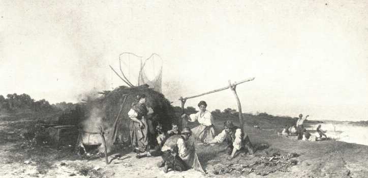 Képeiben sokszor szerepelteti a cigányokat is, Lenau ismert romanticizmusával ábrázolja kóbor életüknek egy közös hangulat fonalára fűzött tünékeny jeleneteit, az édes semmittevést a füstös putrik előtt, a zeneleckét a domb oldalában, a kártyavető vén banyákat, rívó hegedű bugását, cincegő zengésit húros cimbalomnak.