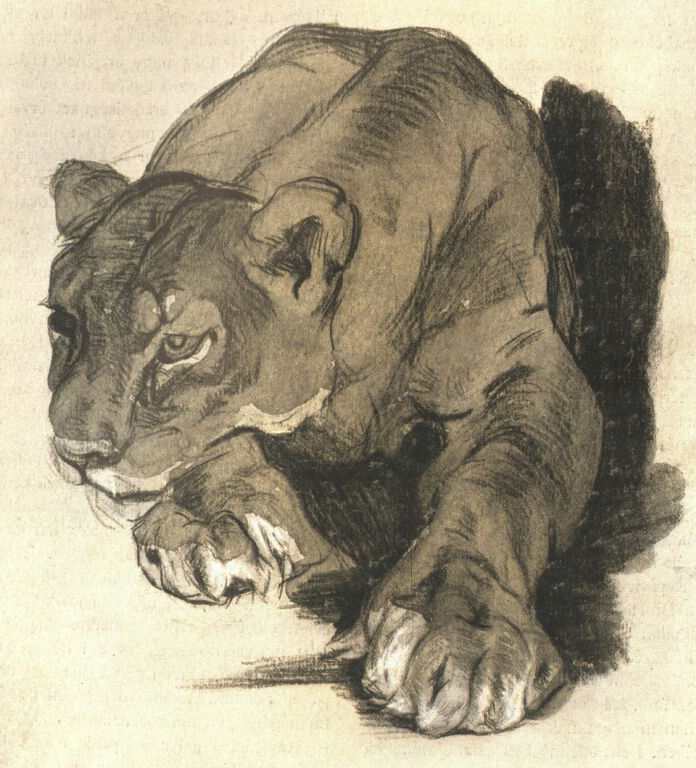 BÜTTNER HELÉN oroszlán-tanulmányát közöljük a 245-ik oldalon. Eredetije tusolt szénrajz.