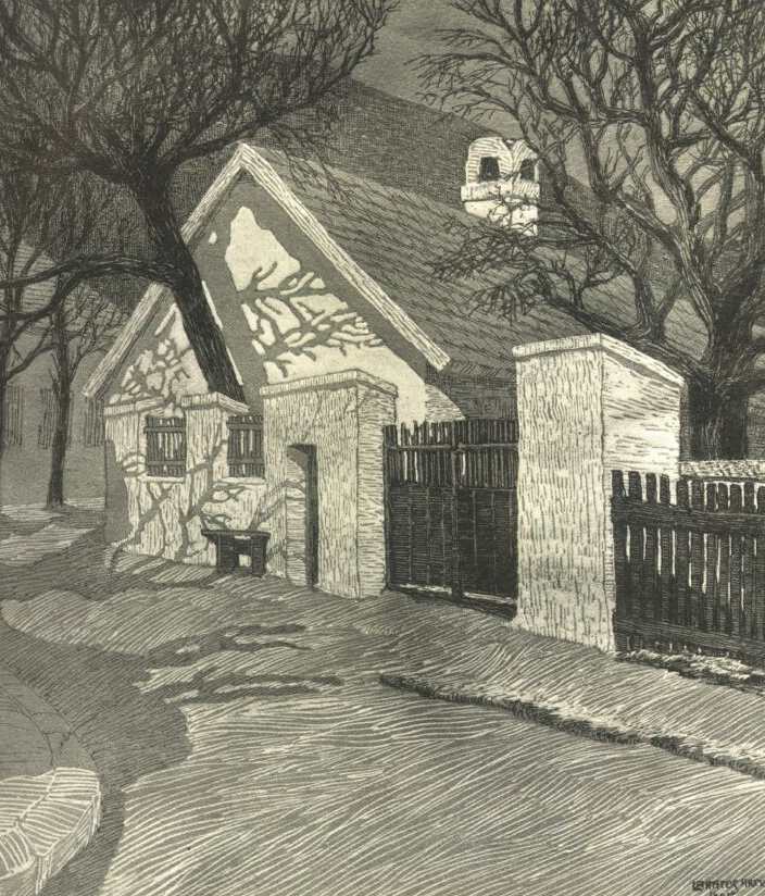 LAKATOS ARTÚR rajzolta a 248-ik oldalon közölt "Falucska" című képet és a 265-ik oldal fejlécét.