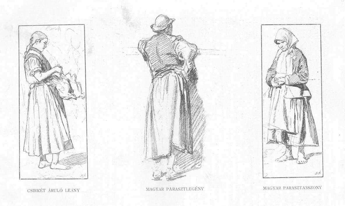 CSIRKÉT ÁRULÓ LEÁNY - MAGYAR PARASZTLEGENY - MAGYAR PARASZTASSZONY SZOLNOKI TÍPUSOK PETTENKOFEN ÁGOST RAJZAI