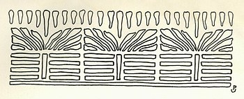 A kisebb motívumokban, minők a szövetek hajtékai stb., egyrészről ugyanazon változatosság, másrészről ugyanazon meggondolt elrendezés észlelhető, amit a nagyobb tömegekben és azok felépítésében tapasztalhatunk. A formák rajza, mint már jeleztük is, sehol-sem részletező és visszamegy a középkori művészetben kifejlesztett típusokra.