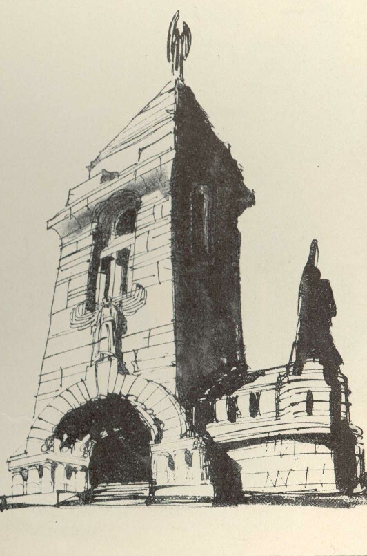A mi architektusunk épp a forró közepén van a küzdelemnek és ereje még egészen friss, sőt érdes. Még ugyancsak tanul, de már erősen dolgozik. Tervvázlatai, melyeknek kisebbített másolatait a "Művészet" íme lenyomtatja, tanultságának és ötletességének az érdekes dokumentumai. Ezek munkaközben, pihenőnek készül-tek. Egyik másik úgy készülhetett, hogy a művész valamely beosztással bíbelődött a nagy rajztáblán. Amikor a körzőt egy-egy percre letette, a számokat lezárta, öt vagy tíz perc alatt a nagy rajzpapiros szélére épített — tollal — egy templomot. Ezek "a tanulatlan" tehetségek így tanulnak. Úgy hogy mindjárt alkotnak is. Ámde Márkus Géza tiltakozik az ellen, hogy ezek a tervek tervek. Szerinte, ezek csak "Schule der Geläufigkeit", csak ötletek, jegyzetek. Nekem úgy tetszik, hogy a jelentőségük mégis több és ő vissza fog térni még ezekre a rajzokra, amelyeket ösztönből, naivul, könnyelműen csinált. A melódia és az épitészeti forma-ötlet ritka és a mi építőmesterünk is majd megbecsüli ezeket az elaprózottan is komoly és kecses ötleteit. Ma abban a korban van és olyan a temperumentuma is, hogy nem látja a tehetsége határait. Ismerős előttünk a végtelenség érzésének ez a kellemesen szédítő érzése. Mámoros az ember, mindenét odaadja és mert legelsőbben is számolni nem tud többé, azt hiszi, mindennél többje marad még meg. Ilyen tobzódást látott a Márkus vázlat-könyvében, amelyből kiszakított oldalak: "Az emlékmű", "A templom", "A bérház", "A nyaraló" és a többi. Valamennyi új és még is egy cúgból való. Mindegyiknek van jelleme, a földből nő ki és nem építészeti könyvekből és nevezetes, de már régebben kész alkotásokból.