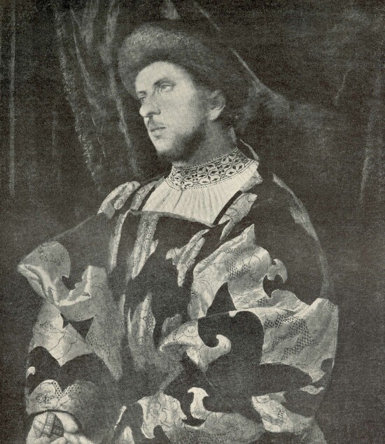 19 Kunstkrit. Studien. I. 373. és III. 115. — Szinte azt sejthetnők, hogy a Morelli-idézte arckép azonos a mi Pulszky-vásárolta képünkkel. Mindenben meg is egyezik vele, kivéve a barett fehér tollat, amelyet Morelli említ. Viszont jó forrásból arról értesültem, hogy a mi képünkön is fehér toll díszítette a barettet, amely azonban a kép tisztítása alkalmával eltűnt.