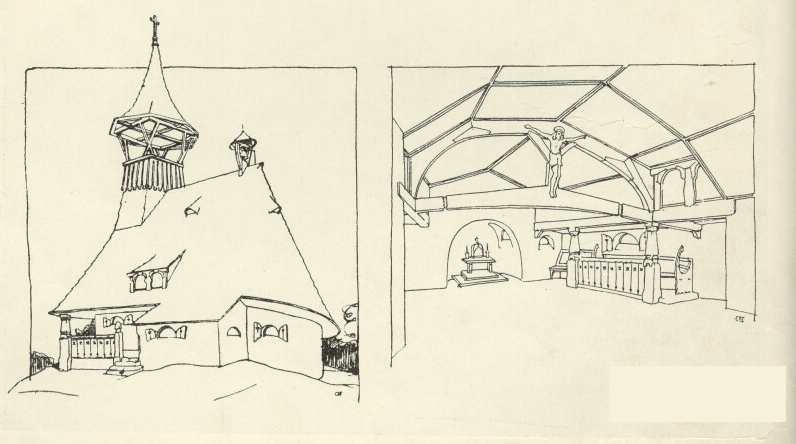 Az utóbbi fajta otthonra mutatuk be néhány példát Vigand Ede házterveiből, megtoldva egy fában tervezett kedves erdei kápolnával és három sírkő-tervezettel.
