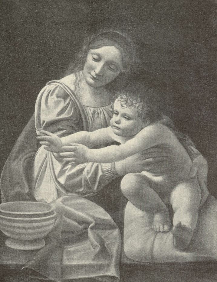 15 Hasonló példa gyanánt szolgálhat egy motívumaiban és érzületében megegyező kompozíció a római Gál. Colonnában, ahol a gyermek Jézus a kis Jánost meg akarja csókolni és egy másik Madonna az Uffizi-gyűj-teményben, a két szent gyermekkel, de szent Anna nélkül.