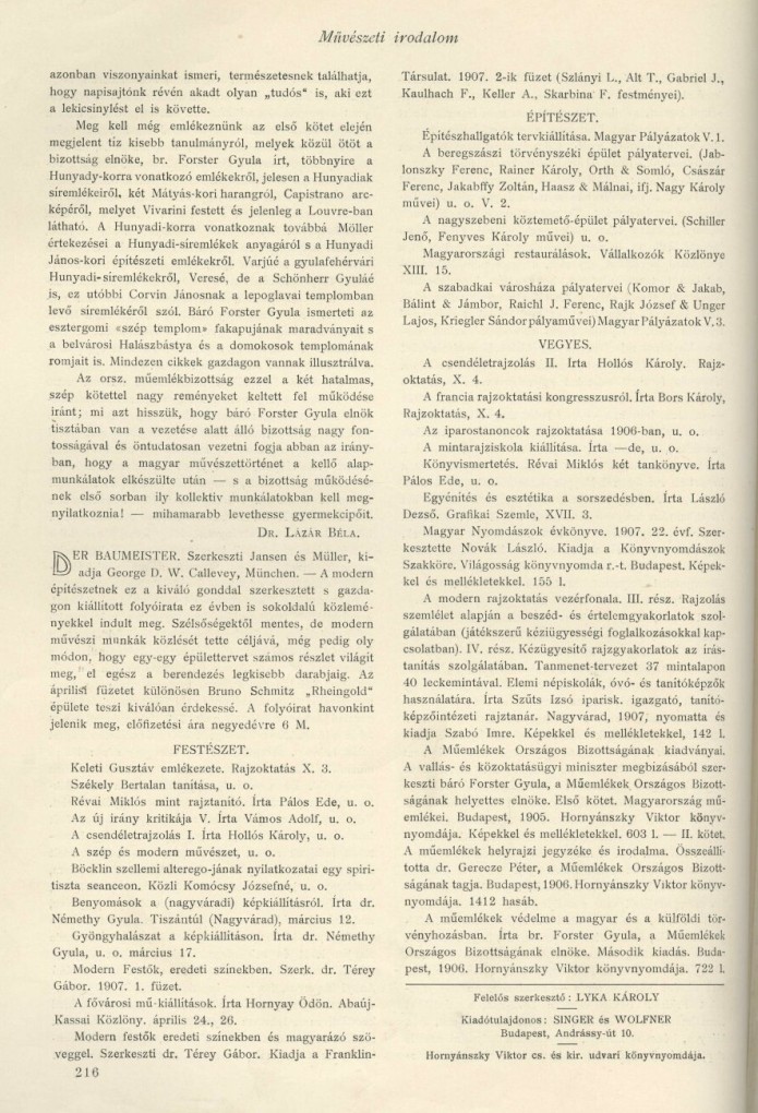 Hatodik évfolyam, 1907