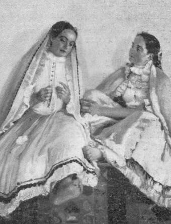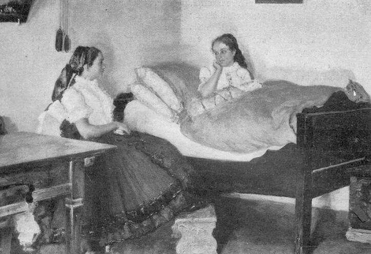 szánva. Ez a két festmény rendkívül tiszta, kedves és költői modorban, mint pendant van megoldva. Derült, átlátszó, de amellett erőteljes szinei valami ünnepélyes vidám jelleget kölcsönöznek e két alkotásnak, mely mint a tavaszi levegő s mint az ifjanti jókedv hat az emberre. Egy, a nemes életöröm által felhangolt nemzedéknek zavartalan derültsége járja át ezt az alkotást. A táncképen, mint figyelő arcok, a megrendelő leánykáinak az arcképei is rajta vannak. Mindez valósággal férfias biztossággal van beállítva - - ez éppen az igazi művészi tudás, mely nem kutatja a nemet -az érzés azonban, mely a művet áthatja, hamisíttatlanul nőies, félreismerhetetlenül gyöngéd, asszonyias - - és ez jól is van így! Paczka Kornélia távol áll attól, hogy, mint költő-, író-, festő- vagy agyagot gyúró társnői közül sokan, mint férfias egyéniség akarjon a világ előtt szerepelni. Érzésében teljesen nőies. Csak az alkotásban, amely csak egy lehet s amelynél nem a nem határoz, veszi fel a versenyt. Az a végtelen báj, amely művészi megjelenéséből kisugárzik, nagyrészt viselkedésének ebből a becsületességéből és természetességéből fakad.