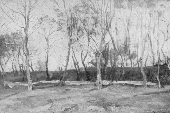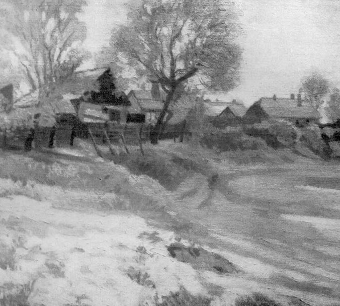 Majd az ibolyás szürkeség kora következett. Ugyanaz a kétféle látás, a külön dekoráció s a külön hangulatlátás érvényesült ennek a korszaknak képeiben is. De már nem a részletet, hanem a foltot tették uralkodóvá. Hanem ez a folt, a két urat szolgálván, bizonytalanul lebzselt a vásznon. Bizonytalanul és bátortalanul. A dekorációs szándék a forma és a szín között nem tudott választani, a hangulatlátáson pedig az érzelgés uralkodott el. Néha a forma diadalmaskodott, s ilyenkor a dekorációsnak szánt tájkép sajátságos naturalisztikus tájképpé lett, néha meg az érzelgés minden egyéb szándék fölé kerekedett, s a naturalisz-tikusnak szánt tájkép gyöngéd hangulatképpé lett. Szlányinak éppen ezek a képei a szándék és az eredmény ellentétét dokumentáló tájképei voltak az ő második korszakának legérdekesebb, talán legértékesebb képei is. Hiszen művészeti küzködésről tanúskodnak, már pedig ez a küzködés a legizgatóbb, talán a legnemesebb emberi nyilvánulások egyike.