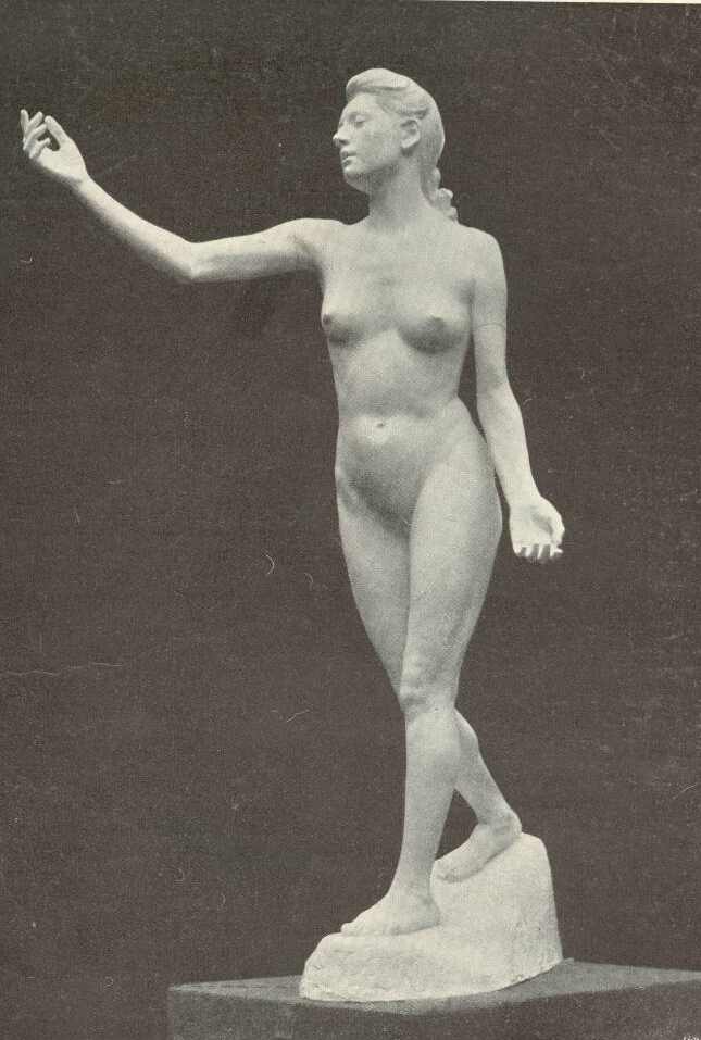 A MŰCSARNOK TÉLI KIÁLLÍTÁSÁN öt magyar művész kapott kitüntetést. A kultusz-kormány két nagy aranyérmet juttatott számukra. Ezek egyikét Karlovszky, másikát Telcs kapta meg.