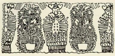 A négyzetes és félköríves mezők találkozási vonalán egyszerűen tagozott, széles festett párkány fut végig; ugyanilyen egyszerű, dísznélküli az összes mezők keretelése. A két-két szemben lévő négyzetes mezőt egy-egy, félpillér formáját mímelő, széles festett fríz választja el egymástól. Ezeket "a chiaroscuro", monoton barna színre festette a mester, s elárasztotta reliefszerű groteszk-ábrázolásokkal. Változatosan stilizált szörnyek, szirének, csigavonalba átmenő farkkal, fantasztikus madarak, különböző allegorikus alakok, arcképes médail-lonok, írástáblák, díszes vázák, melyekben hosz-szan fölfutó virágok nyílnak, virág- és gyümölcsfüzérek — szóval az antik groteszk témái egyénien hangszerelve, s megtoldva egy-egy új motívummal, a mester fantáziájának sajátszerű szülötteivel. Ez utóbbiak között legkülönösebb egy puttó testű, öreges fejű manó, lobogó szakállal, denevérszárnynyal; a baloldali pillér-fríz talapzatáról két ilyen ördöngős alak vigyorog a nézőre. Az Uffizi több oly rajzát őrzi, melyeken groteszk-tanulmányokat végzett. Az egyiken (vetrina 370, num. 126°; tollrajz) Paris ítéletét ábrázoló egy jelenetet puttókból, szirénekből és díszedényekből képzett ékítmények veszik körül; a lapot fönt és lent egy-egy csigavonalba hajló virág-fríz szegélyezi. Egy másik (v. 367, n. 1640; szépia, fehér vízfestékkel domborítva) csigavonalas- ékít-ményű fríz részletét kapjuk; a rajzot négyzetes háló lepi el, ami arra mutat, hogy nagyobb méretben való kivitelhez előtanulmányul szolgált. Ugyancsak fríztanulmány az 1641. számú (v. 368), tollal rajzolt, szépiával domborított lap ; a motívumot farkukkal egymáshoz font szörnyek, gólyák, fantasztikus madarak és kígyók szolgáltatják. Egy tollal készített további rajzon (v. 370, n. 1540°) stilizált farkú szirént látunk, amint díszes korsóból vizet önt alá. A sorban végső s valószínűleg kronológiailag is utolsó (v. 370, n. 1643) szépiával festett puttót ábrázol, amint erősen barokkformájú coneából bújik elő. Mind e rajzok gyors munkát árulnak el; a tollrajzok megszakított, sokszor pentimento-szerűkörvonalakban készültek ; az árnyékolást a gyors munkát kedvelő mester többnyire az ecsetre bízza, s ha mégis tollal árnyékol, vonalai párhuzamosan haladnak; csak egy esetben (v. 370, n. 1540°) jelzi az árnyékot egymást keresztező tollvonásokkal. A kápolna keresztboltozatú mennyezetét is freszkók díszítik. Az alakok sötétkék alapból emelkednek ki. Középen a Francia műhelyéből idelibbent zenélő angyaloktól körülvéve, arany mandorlában az Atyaisten áldó alakja foglal helyet, kinek típusa ugyancsak Franciához vezet vissza. E csoport körül négy prófétának nagyobb és ugyanannyi szibillának kisebb alakja váltakozik egymással. Az ívek sarkaiban egy-egy angyal szimbolikus jelvényeket tart. A boltcikkelyeket arany alapon festett groteszk ékítményű színes sávok szegélyezik, s ezek, váltakozva egy-egy puttótól és egy-egy szeráffejtől képzett gyámban futnak össze.