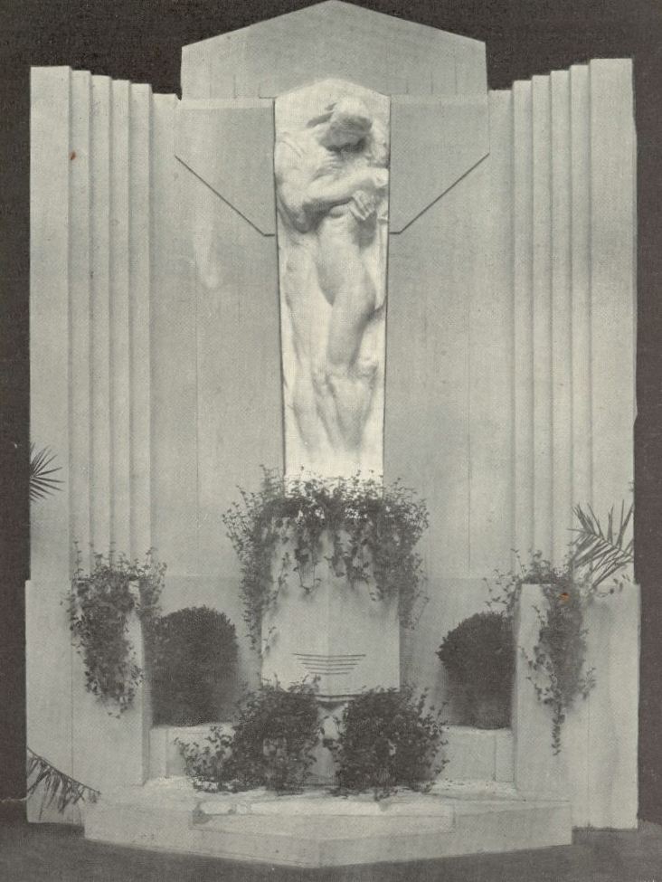 A külső oszlopokon látható szobrász-munkákat Alexy Károlyra bízták, ki Londonban dolgozott egyideig s a híres Brocky Károly festőművész barátja és protezsáltja volt.