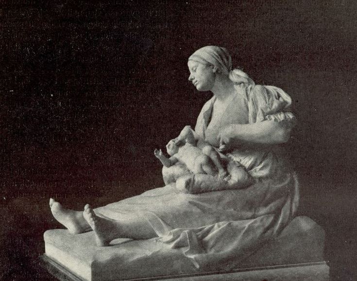 Ez a kis vallomás valóságos fejlődési vázlat és jobb alapja talán a oeuvre áttekintésének, mint valami önkényes kombináció. A fordulót jelző lovasszobor maga már a higga-dást jelzi; visszatartott, erőpróbája a tudásnak, míg talapzatán a heves vérmérséklet korlátlanul csapong, a reliefek mozgalmasak, forró csatadal ritmusa szerint, az ornamentika közben elhelyezett két akt is dekorativ lendületű. Az utolsó szerelem brilliáns aktja korábbi ugyan a lovas szobornál, de a főművek valóban, utána következnek és szinte felváltják egymást a nyugalmas egyszerűség és a csapongó fantázia termékei, amint az egyik, vagy a másik kerekedik felül a fejlődés folyamán. Jenő herceg szobrával körülbelül egy időből való "A kis türelmetlen" márványcsoportja. Anya, a gyermekével. Ami a címben, a témában zsánerszerű, az nincs hangsúlyozva a kivitelben. Nem szentimentális ember Róna és nem is pályázik olcsó ellágyulásra. Erőteljes, kifejlett, az egyszerű parasztruha alatt teljesen érvényesülő asszonyi test a főtémája és az elnyújtott lábakkal, — megint két pompásan megmintázott lábszár néz ki a ruha alól — egyenes felső testtel földön ülő asszony, ölében az apró, síró, emlő után kapkodó csecsemő, a leendő ember, a maga furcsa és kedves formáival, amelyek így a szobrász keze útján egybe fonódnak az életet adó anyáéval. Monumentális szobrain, Róna maga hangoztatta magyarsága csak közvetve érvényesül, a német eredetű klasszicizmus elhagyásában és az erőteljes realizmusban, amely természetesen nem indulhatott egyéb után, mint amit itt, maga körül, magyar környezetben, a szobrász valóban látott. A kis türelmetlen már minden hivalkodás, cifrázás nélkül, egyszerűen, közvetlenül magyar. A parasztasszony ruháján csak egy ingváll-darab, egy hátrakötött kendő jelzi ugyan a népies eredetet, de az egészet, mégis, magyarnak, színpadiasságtól menten népiesnek látjuk. Nem az úgynevezett lélek, nem meghatározatlan sejtések éreztetik velünk magyarságát. A művész formák útján fejezi ki érzéseit és egyenesen ezek a formák emlékeztetnek bennünket a falura, a szabad levegőre, a napra. A jól kifejlődött izmok, a cipőtől meg nem nyomorított láb, a fej, az arc, amely kedves és meleg tekintetű, noha nem hasonlít Madonnákra, nem idealizált, nem kínosan szabályszerű. Semmi magyarázó jel, semmi, szorosan az alakokhoz nem tartozó nincs ezen a szobron, amelynek elkészültével hosszú évekig kevés ideje jut Rónának az intimebb hangulatokban való elmerülésre.