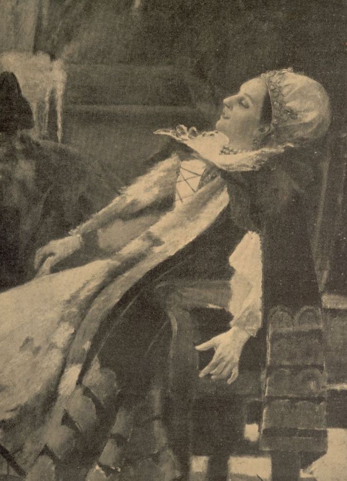 De egy pillanatra - - itt ott - az alapérzése mintha kitörne, mintha emberi szimpátiák ébredeznének lelkében, miközben Báthory Erzsébetnek szadisztikus gyönyörbe elmerült alakját, kéjes mosolyát az arcán, görcsös kézjátékát, erőtlen székbe dőlését, testi elernyedését festette, azzal a finomkodó formabiztonsággal, mely minden színértéknek harmóniába illesztése mellett, a részletekbe való szerető elmélyedését is igazolja.