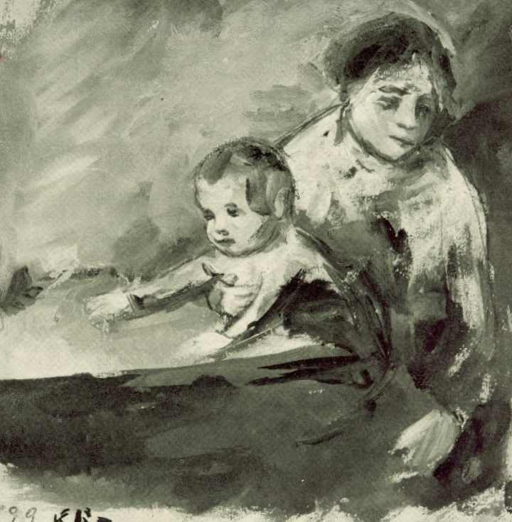 Nyilván a feladat könnyebbsége kedvéért mintázta a kis fiút mély álomba merülten, mert gyakorlatlan kezdő létére az ébren nyugtalankodó gyermeken a formákat aligha tudta volna megfigyelni.