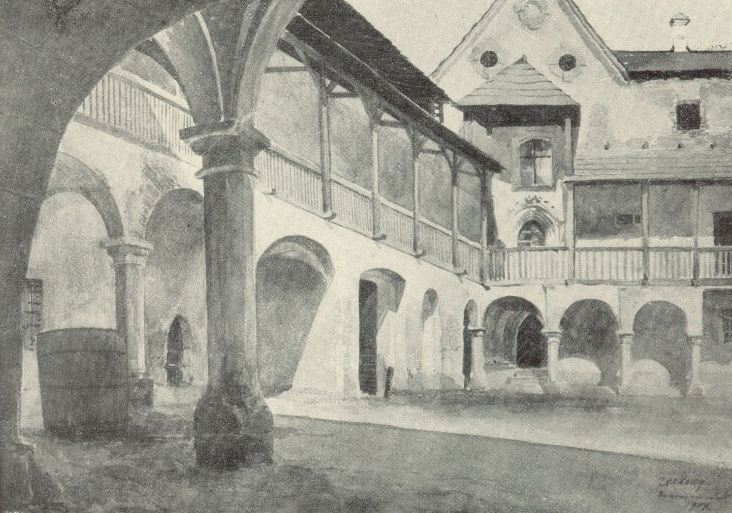 A ZÓLYOMI VÁRUDVAR NYUGATI OLDALA ZORKÓCZY GYULA VÍZFESTMÉNYE