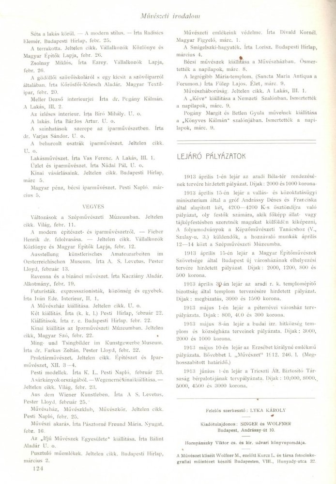 Tizenkettedik évfolyam, 1913