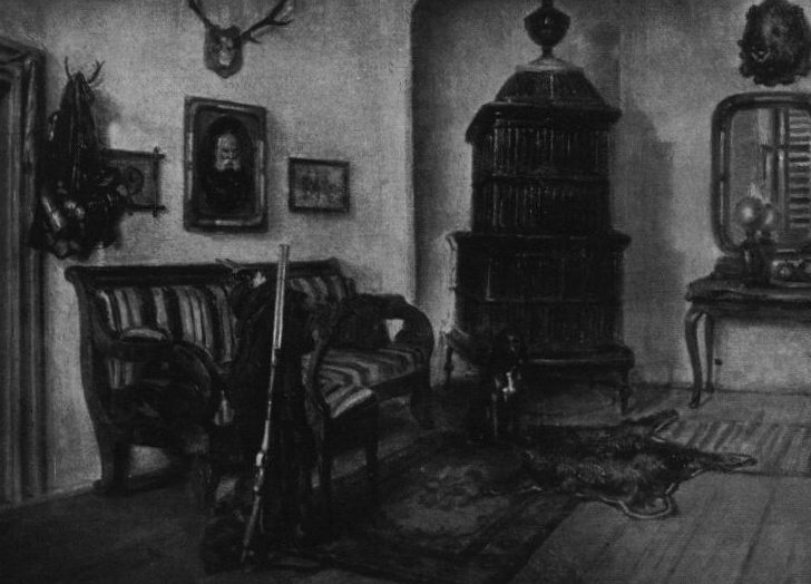 EGY VADÁSZ SZOBÁJA BRUCK MIKSA FESTMÉNYE BÁRÓ INKEY JÓZSEF TULAJDONA