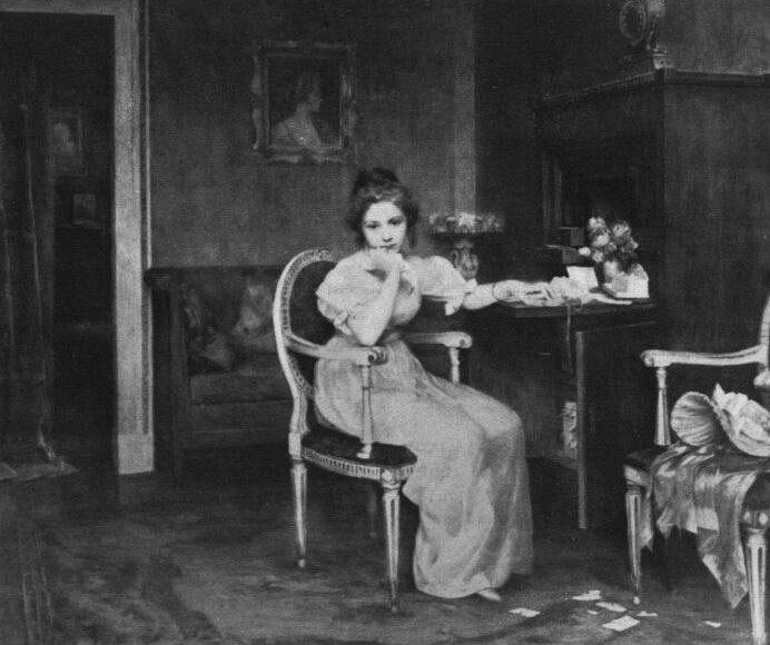 Nos, ebből a szempontból, Jendrássik Jenő festőműhelye nem nyújt számunkra bő anyagot. Ami természetesen, bár egyrészt a kíváncsi vizsgálódót megfosztja attól, hogy Jendrássik egész piktori pályájának fázisait összefoglalólag, egy helyben megismerhesse, másrészt csak örvendetes. Sőt.azt kell mondanunk, hogy ez az, ami tulajdonkép végeredményben minden festőműhely számára kívánatos, cél és hivatás. Arra vall ugyanis ez, hogy amit alkot, nem vándorol vissza, hanem megtalálta útját a művészi szükségleteiket kielégítő emberek közt. Másképen: megtalálta közönségét, műértő gazdáit, fogékony élvezőit a magánosok; az állam, város, múzeumok, képtárak körében. Jendrássik Jenőnél csak alig, elvétve bukkantunk oly munkákra, amelyek régről maradtak itt; távoli stációt és időt jelentenének. Van ugyan ilyen is, de ez fölötte kevés ahhoz, amit általában a festőműhelyek, sajnos, mint szokott jelenséget nyújtanak. Van plein-air, ami abból az időből való, amikor nálunk ez még nem volt általánosan gyakorolt és kultivált irányszerűség. Nem volt uralkodó, hanem inkább csak olykor, mérsékelt és részleges szimptoma gyanánt, külön-külön fordult elő, egyébként másfajta feladatokkal és problémákkal is foglalkozó festők munkálkodásában. Van aztán egy kép, aminél viszont őszintén csodáltuk, hogy nem részesült többi egykorú társainak sorsában. Ugyanis Jendrássik művészetének kétségtelenül egyik legtöbb eredendő kvalitást tükröző darabja. Jellemző arra a nagy festőcsoportra is, ami Bastien-Lepage népes körének nevezhető s jellemző persze magára Jendrássik Jenőre is, aki egy időben ezt a fajta festést hévvel és odaadással művelte. 1891-ből való "Az özvegy" című kép ez, amelyen a zsánerszerű íz alig foglalkoztat. Ami érződik rajta, egy naturalista festő öröme, derült, világos színekben, nem aprózó előadással, hanem összefoglalóbban, egyszerűen.