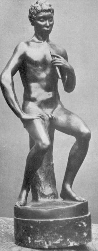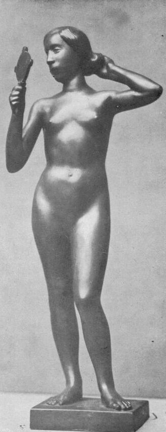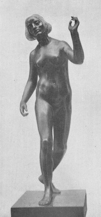 E szobrokon már észrevehető volt olyan törekvés, amely a görögök és a reneszánsz tárházából közvetlen tapasztalatokat merít. Azóta kissé bőven teltek az évek. Közben a művész a "Nyolczak"-nál élvezett vendégjogot s mateljesebben, szuverénebbül érvényesül szobrain az a felfogás, az a stílus, amelyhez az első inspirációt Firenze adta. Bizonyos azonban, hogy az az archaizáló vonás, amely az újabb németeknél már az unalomig menő divatosság szimptomáit öleli fel, nincs meg rajtuk. Szobrai: testek, a maguk logikus felépítettségében. Célzatuk nem az, hogy külön valami önmagáért való vonalat csillogtassanak, hirtelen történő mozgást, nekilendülést vagy belső, lelki hullámzást. Hanem: formákat, amint összekapcsolódnak organikus egésszé. Előadásuk mellőzi a felület számtalan hor-padását, az izmok és erek aprólékosságait is kirajzoló hűséget. A lényeget keresi, lehetőleg tömören és egyszerűsítve, anélkül, hogy bárhol valamely forma az elvont geometrikus sémához járna közel. Lábuk alól nem engedik ki végkép ugyan a naturalista igazság talaját, de a stílus magaslatára igyekeznek.