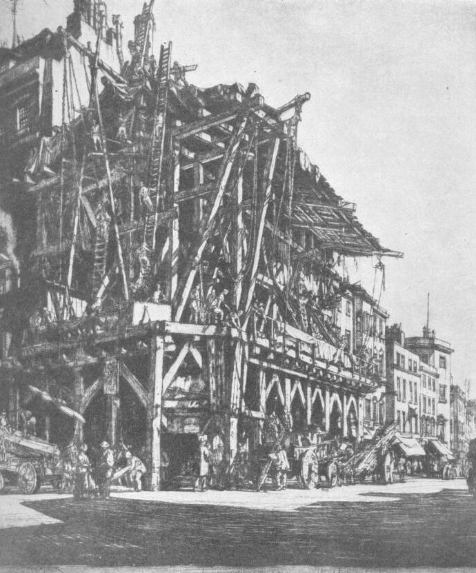 Tíz évvel későbben lépett fel Muirhead Bone, a második nagy talentum, melyet az újabb angol grafika Skóciának köszönhet. 1876-ban született Partickban, Glasgow külvárosában. Építésznek készült s ez meglátszik rajza rendkívüli szabatosságán. Ép oly biztos kézzel ábrázolja, az emberi alakot, az épületek monumentalitását és az épületállványok labirintusát, mint a szabad természet rejtett szépségeit. Megfigyelésének páratlan élessége s éleslátásának gondos részletezése némiképpen Cameron ellenlábasává teszik. E különbség teknikájukban is megnyilatkozik ; Cameron a maratott lemez mestere ; Bone csaknem kivétel nélkül száraz tűvel karcolta lapjait. Művészetének kitűnő példái Az ely-i székesegyház (74. sz.). Nagy építőállvány a Charing Cross pályaudvaron (79. sz.) s az itt közölt Építkezés (77. sz.).