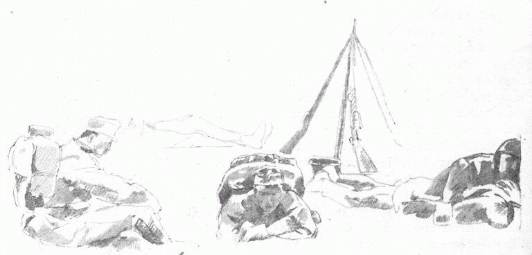 Amit a ma háborújából eddig művészi értékben látunk, az csak rajz lehet. Festői feldolgozásra természetesen még sem alkalom, sem idő nem lehetett.