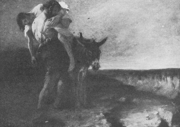 FEJÉR SÁNDOR FESTMÉNYE IRGALMAS SZAMARITÁNUS A KÖNYVES KÁLMÁN JOGOSÍTÁSÁVAL