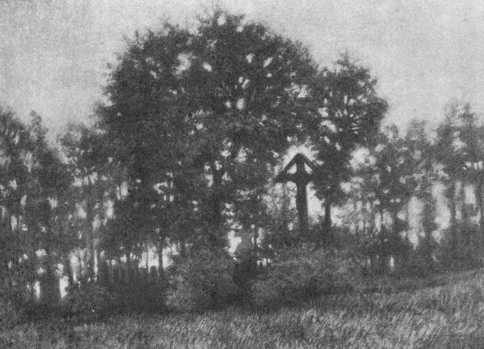 Vannak egyes lapok, amelyeknek festői felfogása egyenesen Szinyei felé utal, nem is beszélve arról, hogy a «Faun és nimfa» véletlenül külső formai tekintetben is meglepően emlékeztet Szinyei «Pogányság» című festményére. (Szépművészeti Múzeum. Modern Képtár.)
